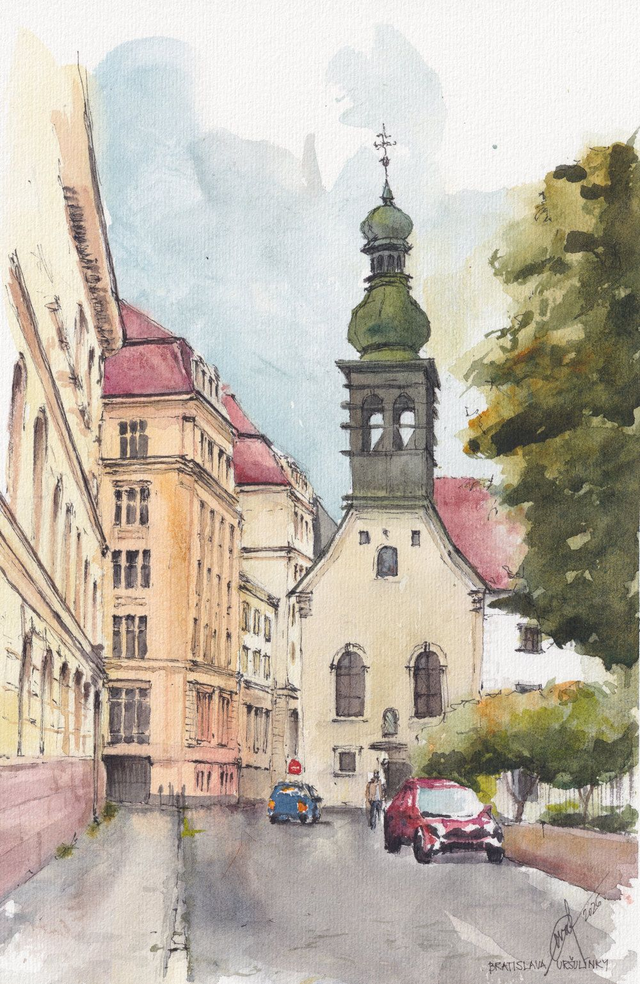 Aquarellbild "Bratislava Uršulínky"